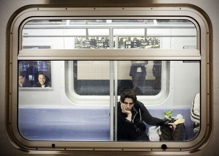 Thinking about this makes me cringe. I try to shift my weight in response, which is nearly impossible as I’m wedged in between two Brooklyn Bros, one of whom refuses to take their backpack off. My airpods are playing the meditation podcast I’m supposed to be listening to but I can’t even hear it. My lunch container with last night’s leftovers is sloshing back and forth. I’m overstimulated so I try to look up. Brooklyn Bro #1, the one with the backpack is tall, which is nice, but he has a receding hairline and a seed in between his front teeth. I should tell him, that would be a nice thing to do, but then again, he’s a random guy, and there’s always a chance he could murder me. So I ignore it. I try to focus on the meditation podcast. Breathing, breathing. Nothing is bothering you. You’re fine. You’re okay.